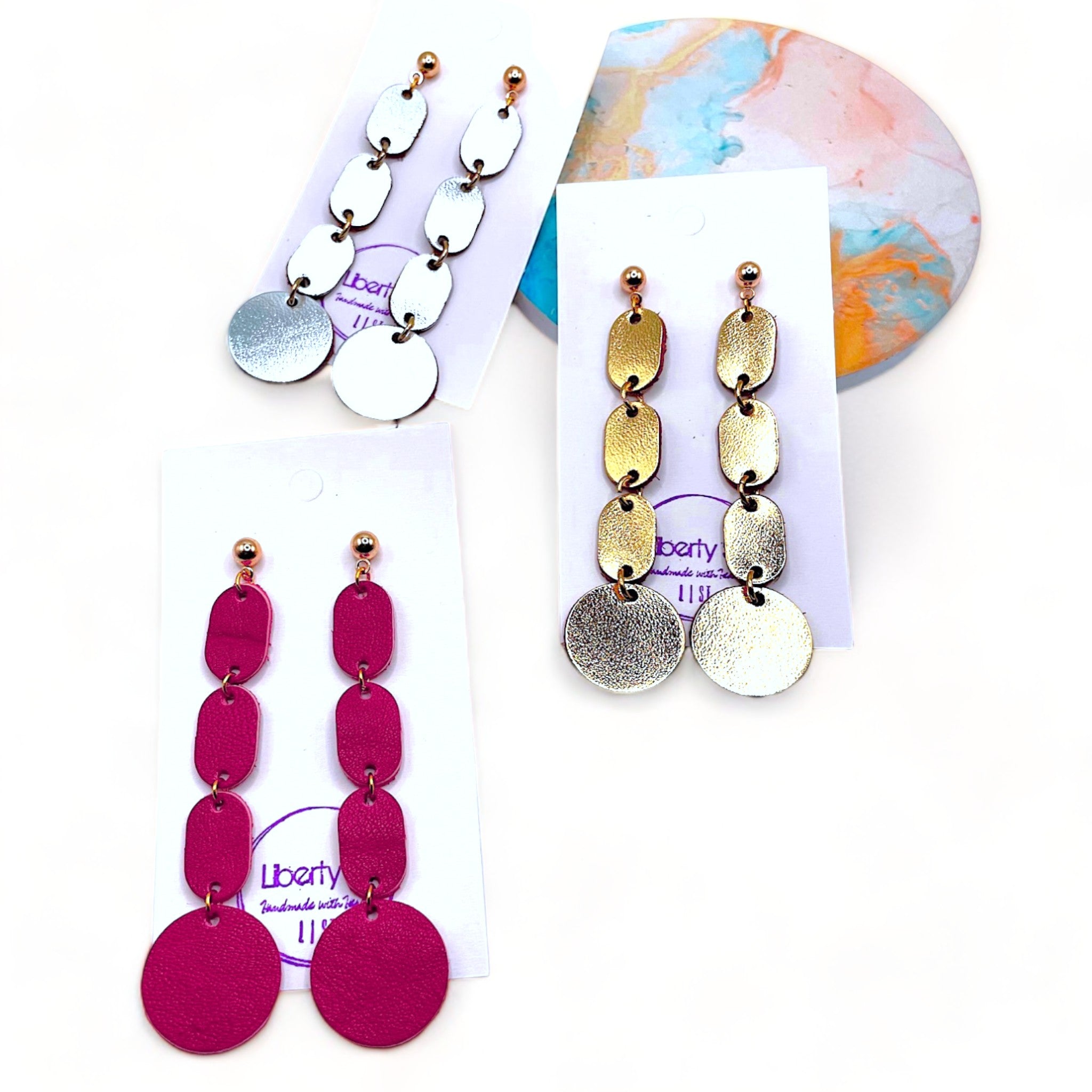 - Upcycled leather earrings