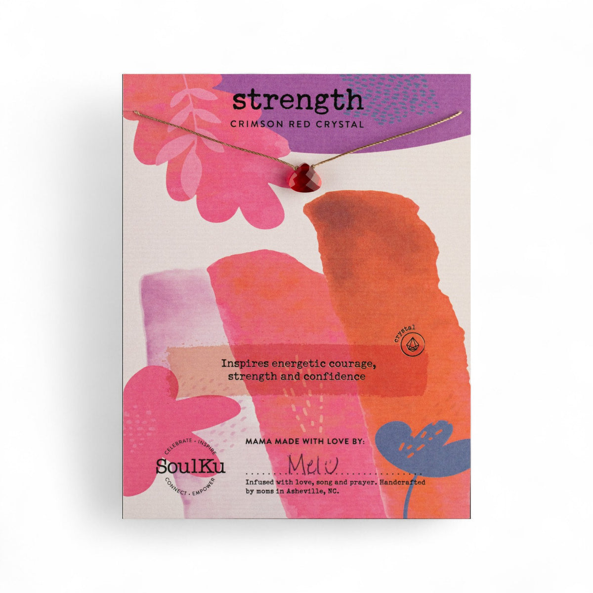 This sparkly Crimson Red Soul Shine cut glass crystal necklace is infused with love. The color red inspires energetic courage, strength, and confidence. 9 x 9 mm cut glass crystal