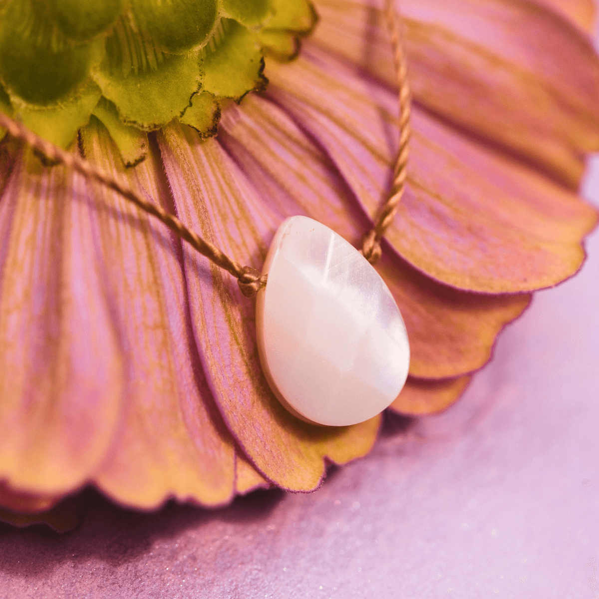 Soft, soothing, and serene, this Mother of Pearl necklace gently calms the nervous system, eases emotional tension, and wraps the spirit in a sacred sense of peace.