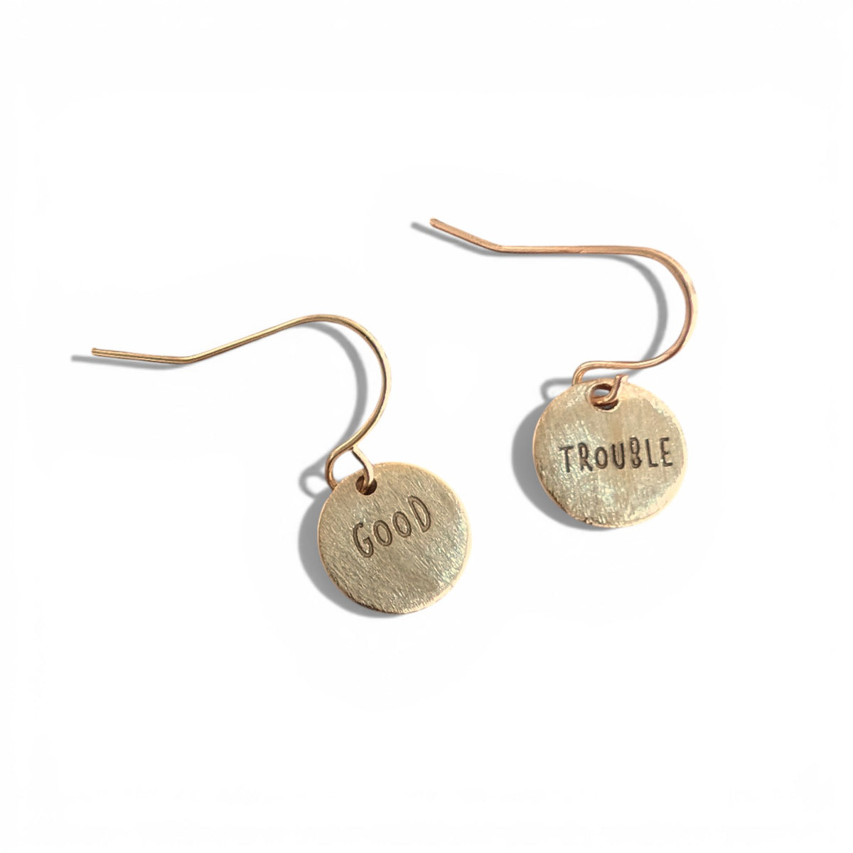 You're going to absolutely love these brushed hypo-allergenic brass earrings that say it loud for you. Each pair of earrings is hand-sanded to a stardust finish, then sealed for long wearability. Our natural metals darken with consistent wear, but can be brightened right back up to their original luster with a polishing cloth or anti-tarnish solution. Or, wear it with it's natural patina after some time.
