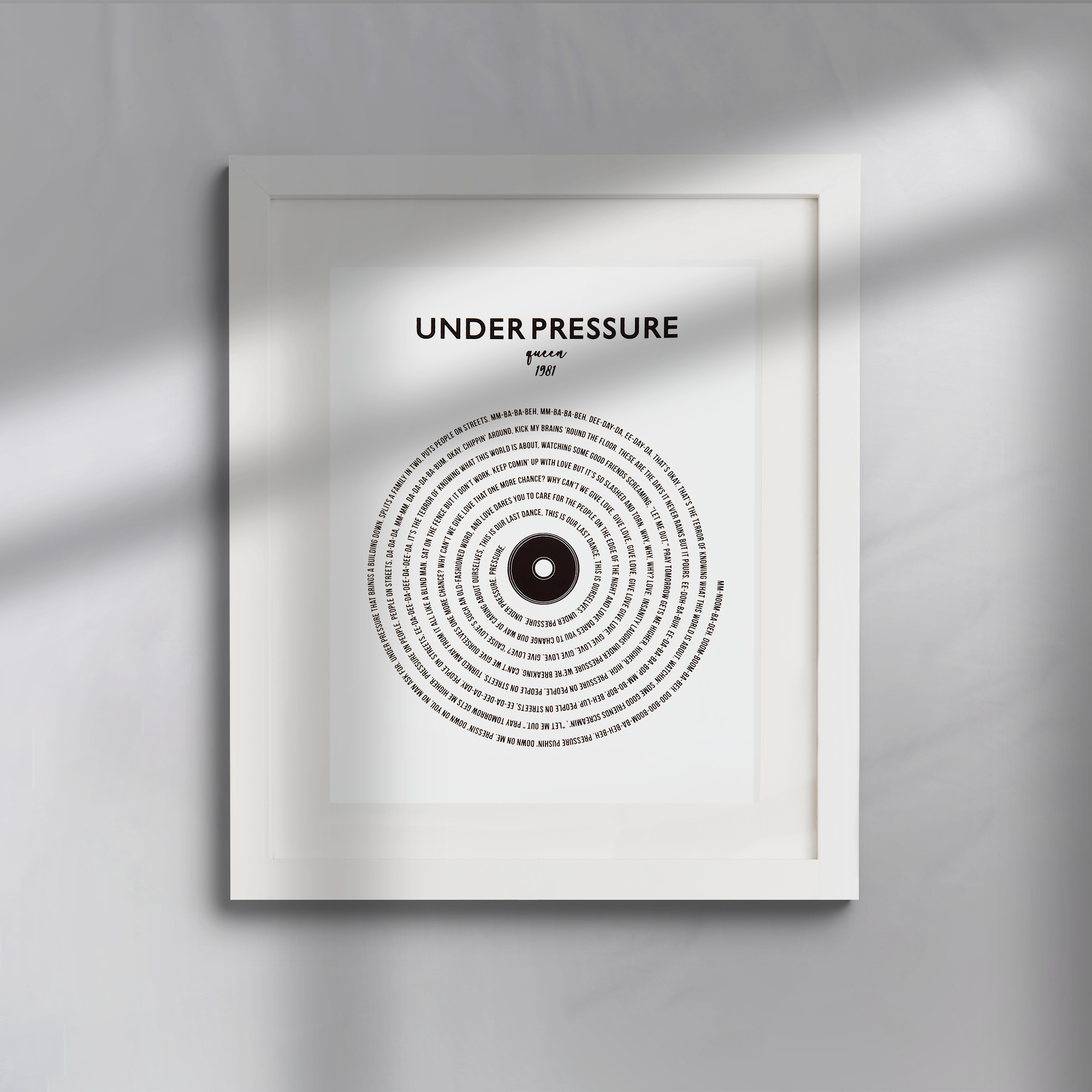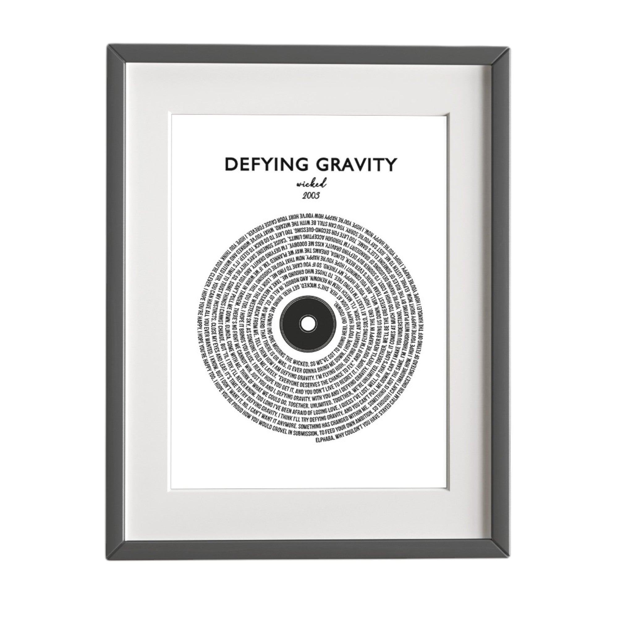 Our Lyric Wall Art Collection is the perfect gift to provide nostalgia and allows music lovers to be able to view their favorite song. Made in the shape of a record, each piece is designed in Atlanta, Georgia, and features the song title, person/band, year of release, and lyrics presented in a wheel-like record shape.