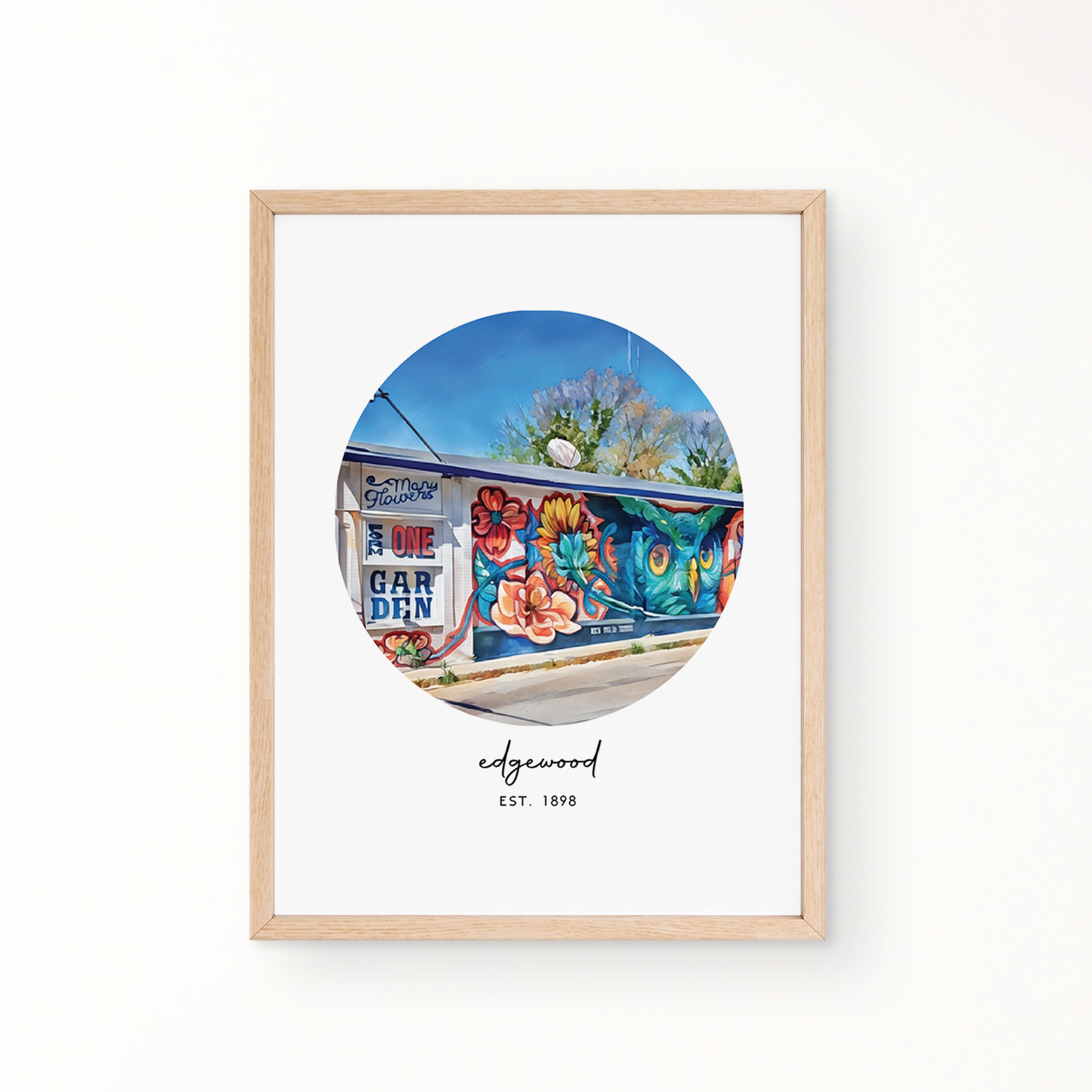 Your featured neighborhood is Edgewood. Shown in an 8.5 x 11 frame, with no mat.