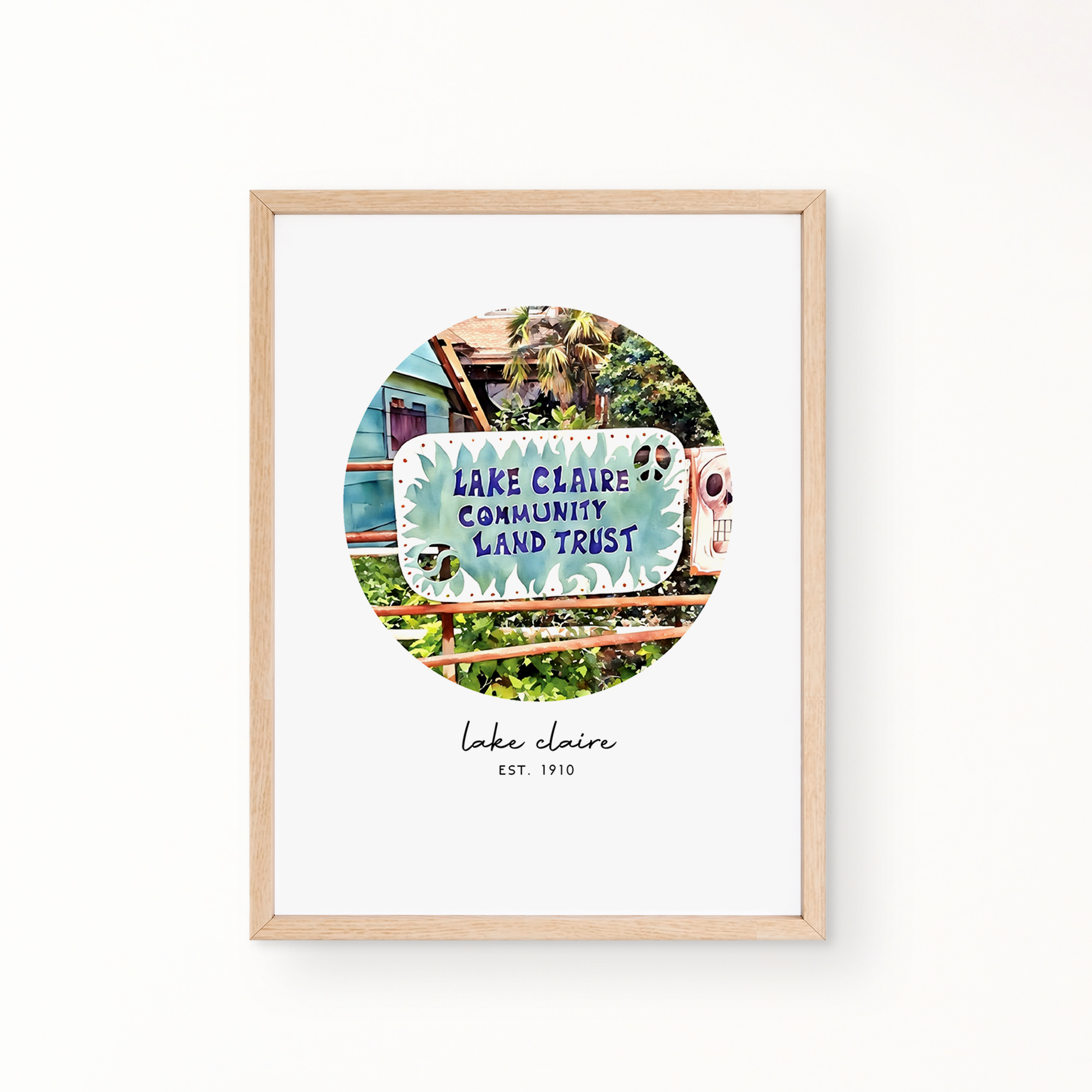 Your featured neighborhood is Lake Claire. Shown in an 8.5 x 11 frame, with no mat.