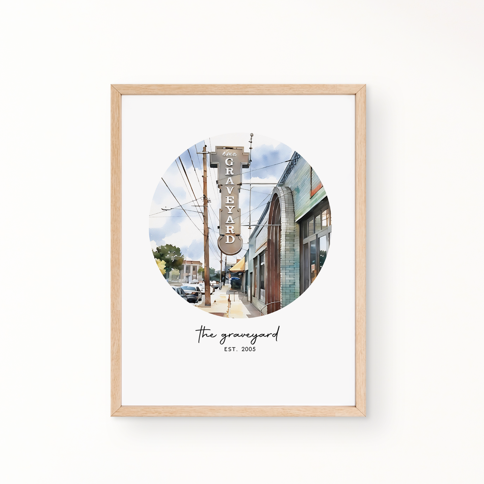 Your featured neighborhood is The Graveyard. Shown in an 8.5 x 11 frame, with no mat.