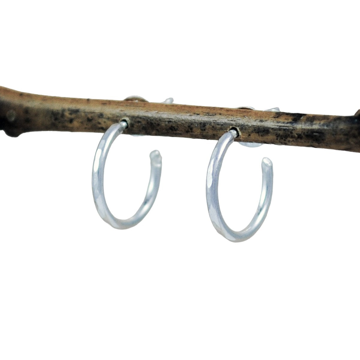 After many requests, I am excited to announce my new huggie style hoops! These are smaller than my previous petite hoop design and fit just around the earlobe. These small hoops are finished with a delicate hammered texture to add a bit of sparkle. Perfect for a small every day earring or in a second hole piercing.